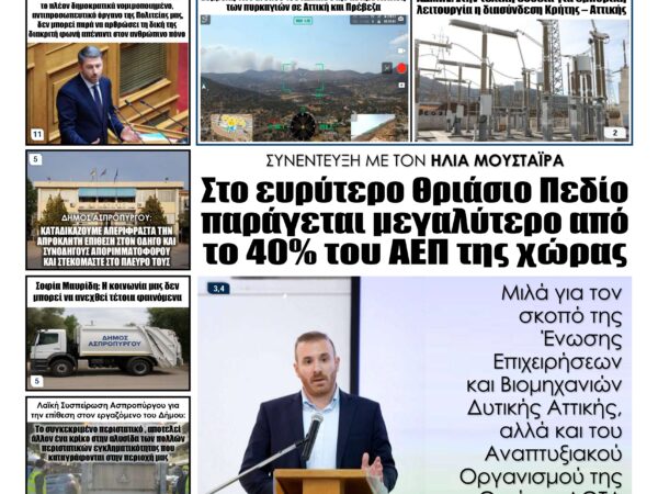 Διαβάστε ολόκληρη την συνέντευξη του Ηλία Μουσταΐρα, Προέδρου Δ.Σ. της Ένωσης Επιχειρήσεων και Βιομηχανιών Δυτικής Αττικής, στην εφημερίδα ΕΠΙΚΑΙΡΟΤΗΤΑ ΔΥΤΙΚΗΣ ΑΤΤΙΚΗΣ.