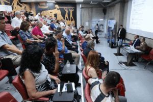 Ο Δρ. Βασίλης Μαγκλάρας, CEO της Θριάσιο Εμπορευματικό Κέντρο (ΘΕΚ) Α.Ε., αφού έκανε ιστορική αναδρομή στην πορεία που από το παρελθόν μέχρι σήμερα έχει λάβει το εν λόγω project, παρουσίασε με εμπεριστατωμένο τρόπο την ανάλυση των δεδομένων της επένδυσης που την καθιστά την δεύτερη μεγαλύτερη των τελευταίων δεκαετιών στην Περιφέρεια Αττικής μετά το project του Ελληνικού. Τόνισε ότι το «Thriasio Logistics Center» θα αποτελεί το νεότερο, μεγαλύτερο και πιο σύγχρονο κέντρο Logistics της Ελλάδας ενώ οι εργασίες αναμένεται σύμφωνα με τον προγραμματισμό της εταιρείας να ξεκινήσουν περί τα τέλη του τρέχοντος έτους 2025. Έγινε εκτενή αναφορά στις παρεχόμενες υπηρεσίες που θα συνδυάζονται από προηγμένη τεχνολογία με δυνατότητα δημιουργίας χιλιάδων άμεσων και έμμεσων θέσεων εργασίας καθώς και στην στρατηγική συνδεσιμότητας του Κέντρου, συμπεριλαμβανομένης της συνδεδεμένης σιδηροδρομικής γραμμής, που θα ενισχύσει τον ρόλο του στο τοπίο της εφοδιαστικής αλυσίδας. Απευθυνόμενος προς το ενδιαφερόμενο κοινό που ρώτησε σχετικά, απάντησε ότι τόσο από περιβαλλοντικής άποψης όσο και από την οικονομοτεχνική βιωσιμότητα της επένδυσης, έχουν ολοκληρωθεί οι απαιτούμενες μελέτες που προβλέπει η κείμενη νομοθεσία δηλώνοντας αισιόδοξος για το θετικό αποτύπωμα που θα έχει στη Δυτική Αττική αλλά και την Χώρα το εν λόγω εμβληματικό εγχείρημα.