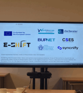 Με ισχυρή και ουσιαστική παρουσία εκπροσώπησε την Ελλάδα και τη Δυτική Αττική η Ένωση Επιχειρήσεων και Βιομηχανιών Δυτικής Αττικής – ΕΕΒΙΔΑ, στο kick-off meeting (εναρκτήρια συνάντηση) του Ευρωπαϊκού Προγράμματος Erasmus+ «E-SHIFT – Reskilling Manufacturing and Assembly Line Workers for the Digital Age», το οποίο πραγματοποιήθηκε στη Βιέννη την Δευτέρα 24 Νοεμβρίου, με τη συμμετοχή φορέων και οργανισμών από πέντε χώρες της Ευρώπης.